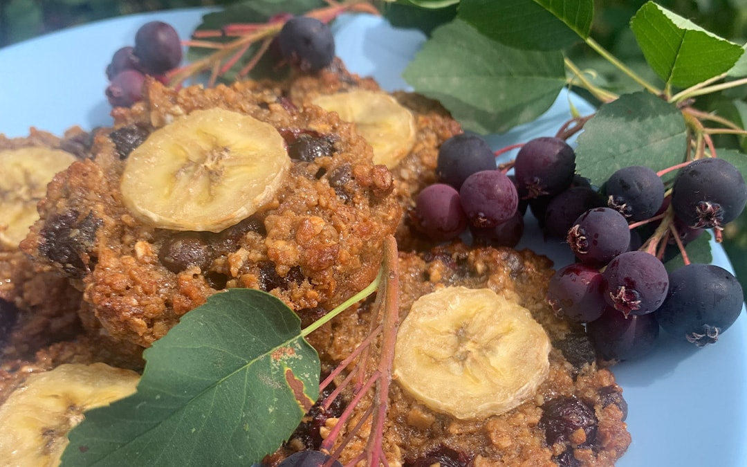 Am profitat de afinii din grădină ca să fac aceste fursecuri de ovăz fără gluten, cu făină de migdale. Banane aveam prea multe în casă și tare mă bucur, fiindcă afinele merg excelent…