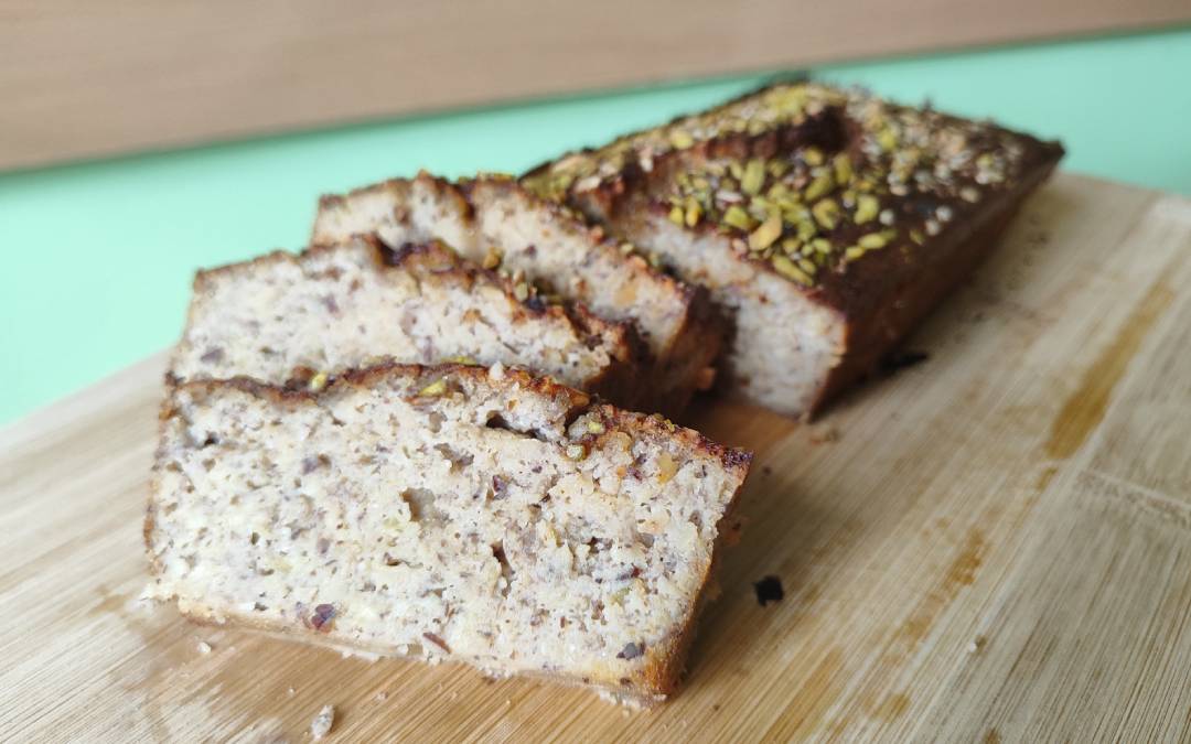 Mi-am făcut pentru cafea un chec delicios de banane, fără gluten, fără cereale, cu făină de alune de pădure și cu făină de migdale. Cu fistic și alune presărate deasupra, a avut aroma…