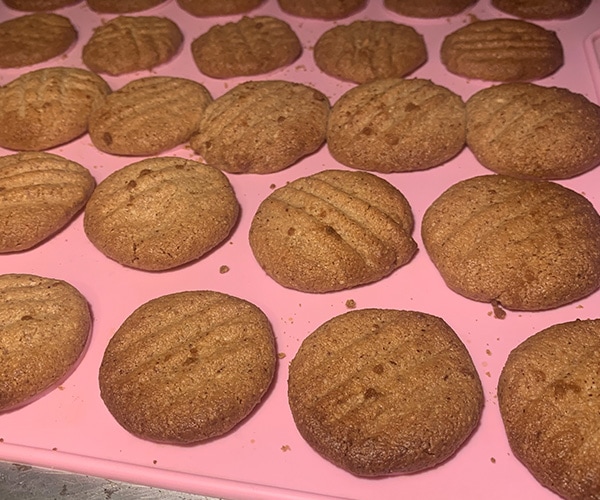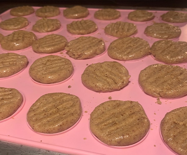 Se formează biluțe de aluat, se așează pe tava de copt și se aplatizează cu o furculiță.