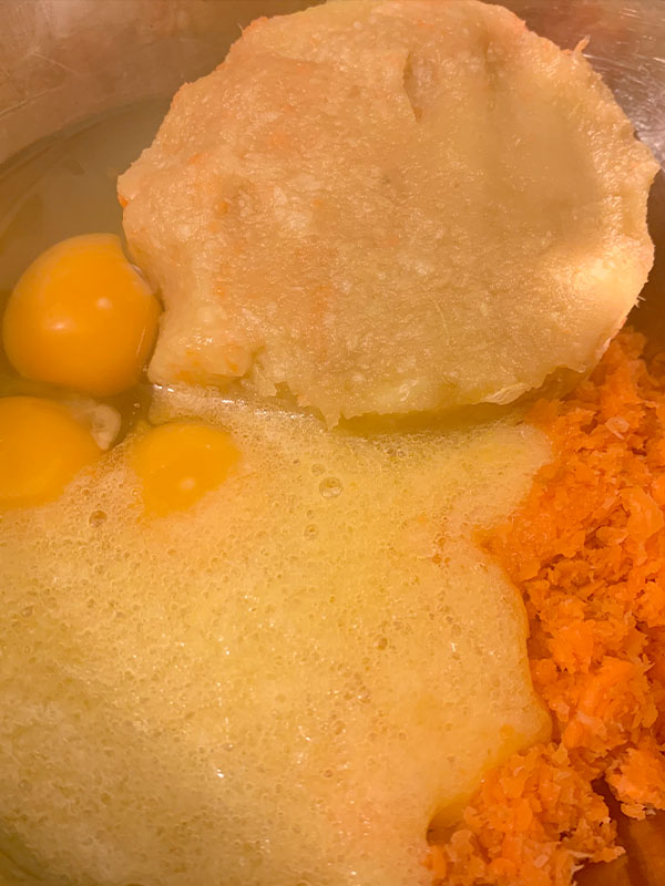 Dacă nu aveți storcător de fructe, puteți folosi direct măr si morcov răzuit, dar va trebui mai multă făină de cocos pentru a absorbi excesul de suc.
