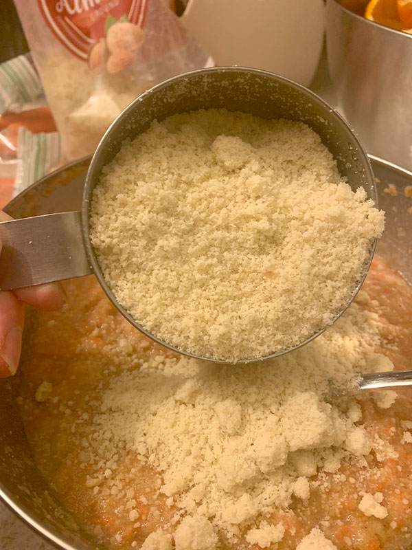 Îmbinarea de măr cu făina de migdale îmi amintește de mărul răzuit cu biscuit din copliărie. Învelișul crocant de alune le completează perfect.