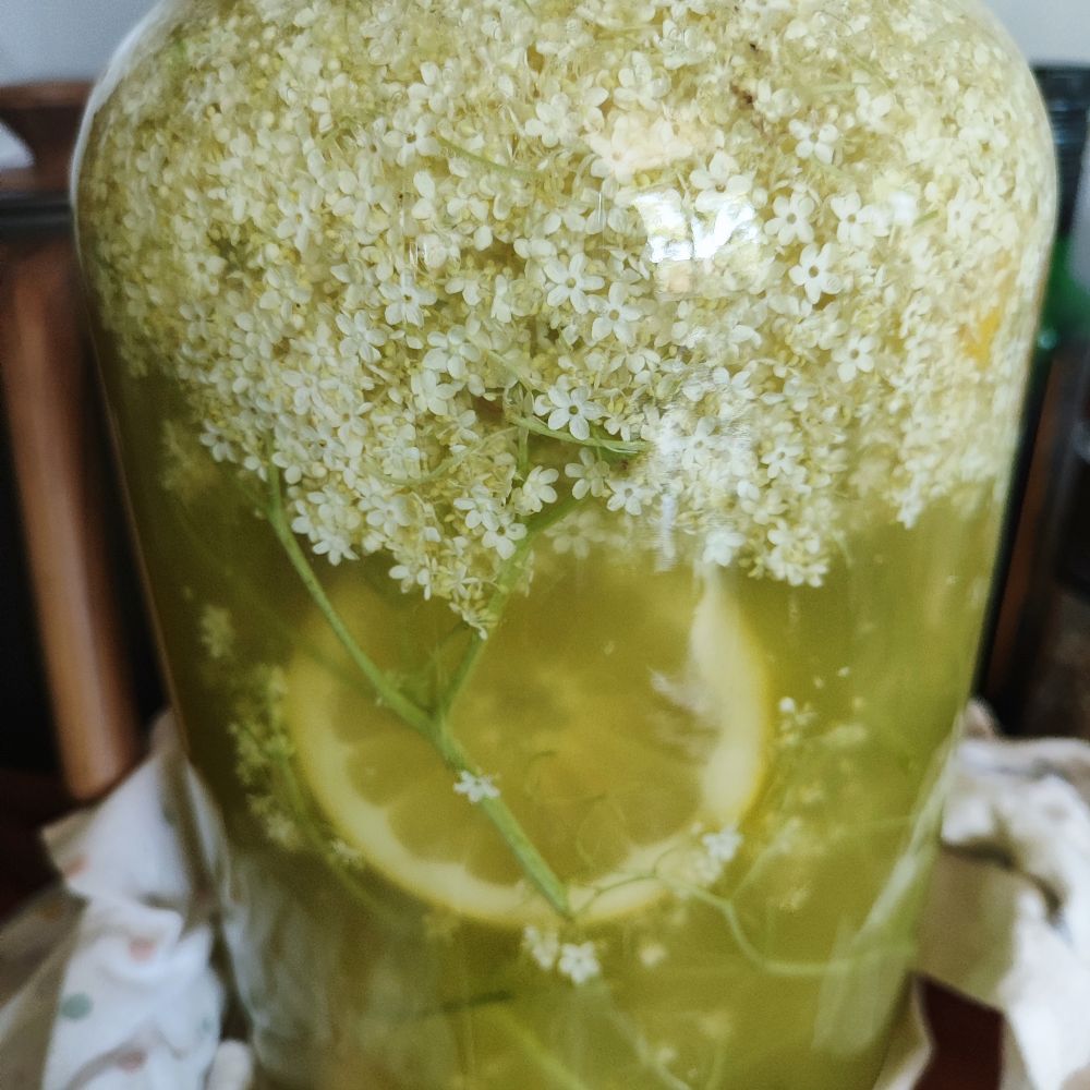 Într-un borcan curat de 4 L, se pun feliile de lămâie, florile, mierea și apa. Se amestecă cu o lingură de lemn și se acoperă cu un castron sau o farfurie. Nu se pune capac înfiletat, ca să nu se facă presiune în timpul fermentării.